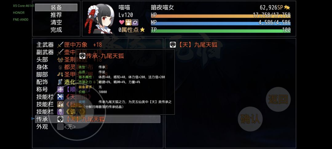10幕九尾会掉落“天·九尾天狐”,比较适合喵喵,实际上你想给谁带就给谁带。