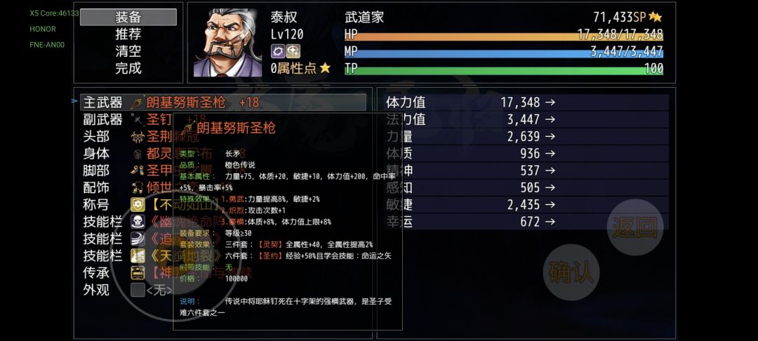 圣枪,物理系主武,平平无奇的属性,总属性能胜真魔剑一些,但是附带的效果嘛()