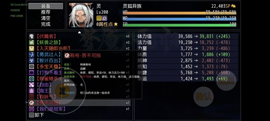 第八幕会拿到“势不可挡”和“有妖气”,一个偏防御一个偏进攻的称号,一周目多多少少还有点使用价值,直接分解凑碎片也不是不可以。