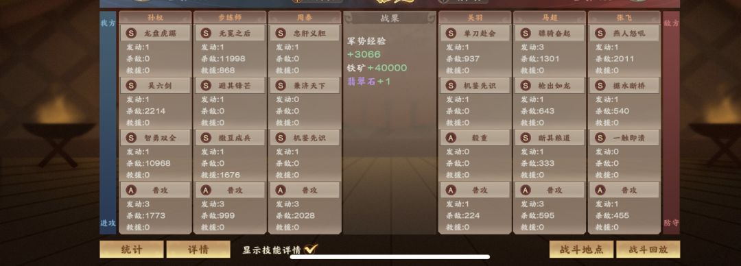 我这个队伍是给孙权上的智勇双全和吴六剑,对比过后才知道吴六剑完全比不上智勇双全的伤害稳定! 吴六剑好歹是孙十万拆出来的技能啊哪里是钟会的技能去比的。