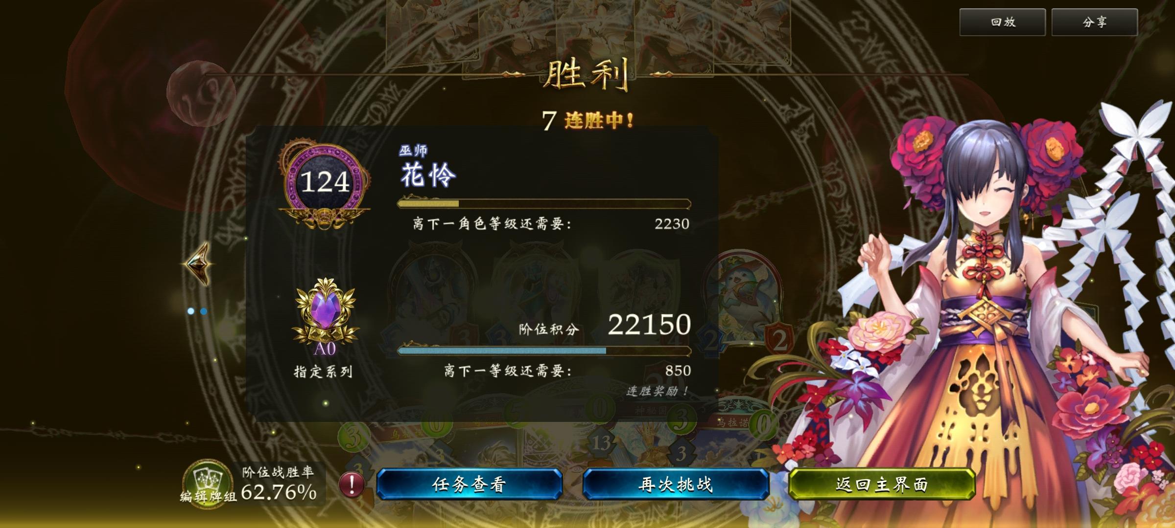 土法太贵了,合不起还不保值,就去玩棋法了,全程棋法上分,感觉还可以,并且只要一直抽最新的卡包就可以了。打龙均势,对面胡我方没骑士就没办法,否则回血解场能撑到9费的。打土法和超越者中劣,需要尽快国王压死。打守冲教大劣,纯坐牢。打控妖大优,乌拉国王文豪对面选一种死法。打皇家看胡度,大优或者中劣。