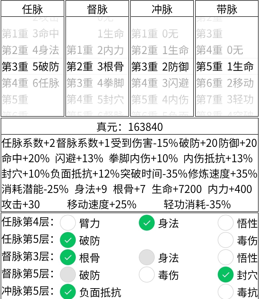 咱未轮的时候不是攒了不少九转嘛,现在派上用场了,用九转快速拉一刀流到300。因为门派武学有一个省九转的特性,不知道的可以在b站搜一下,这里我也讲不清楚,怕产生歧义,原理就是带脉的减潜能消耗。