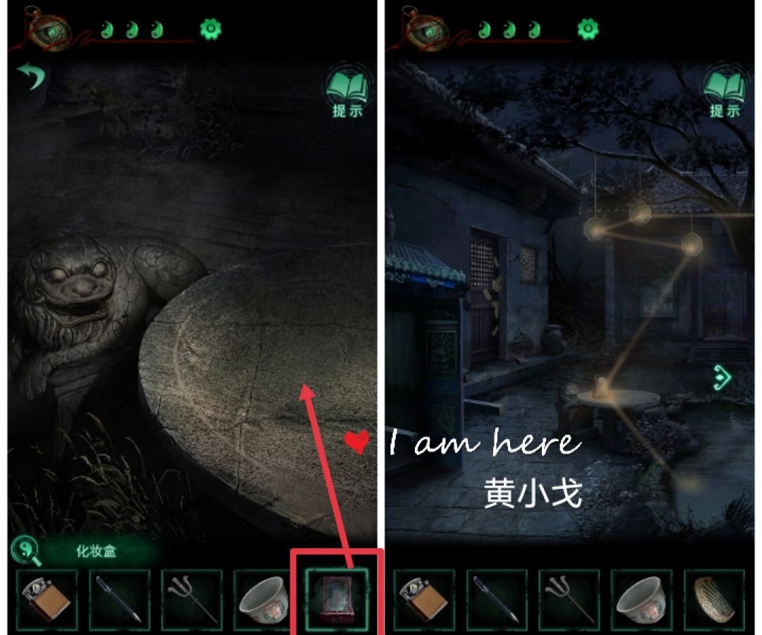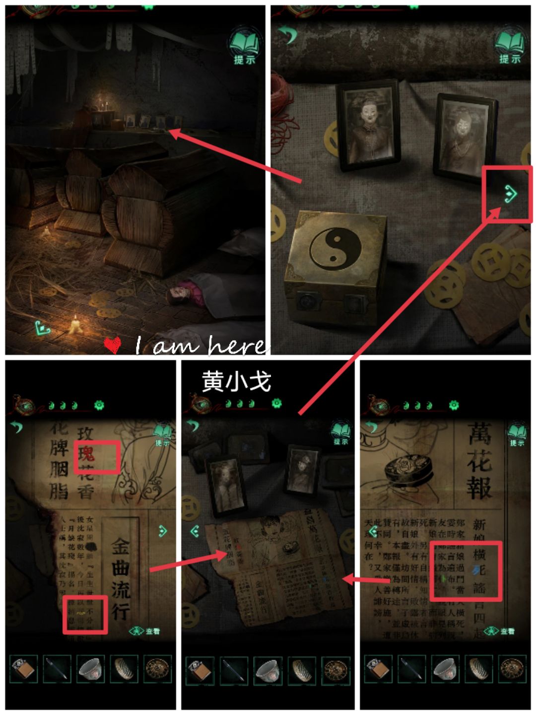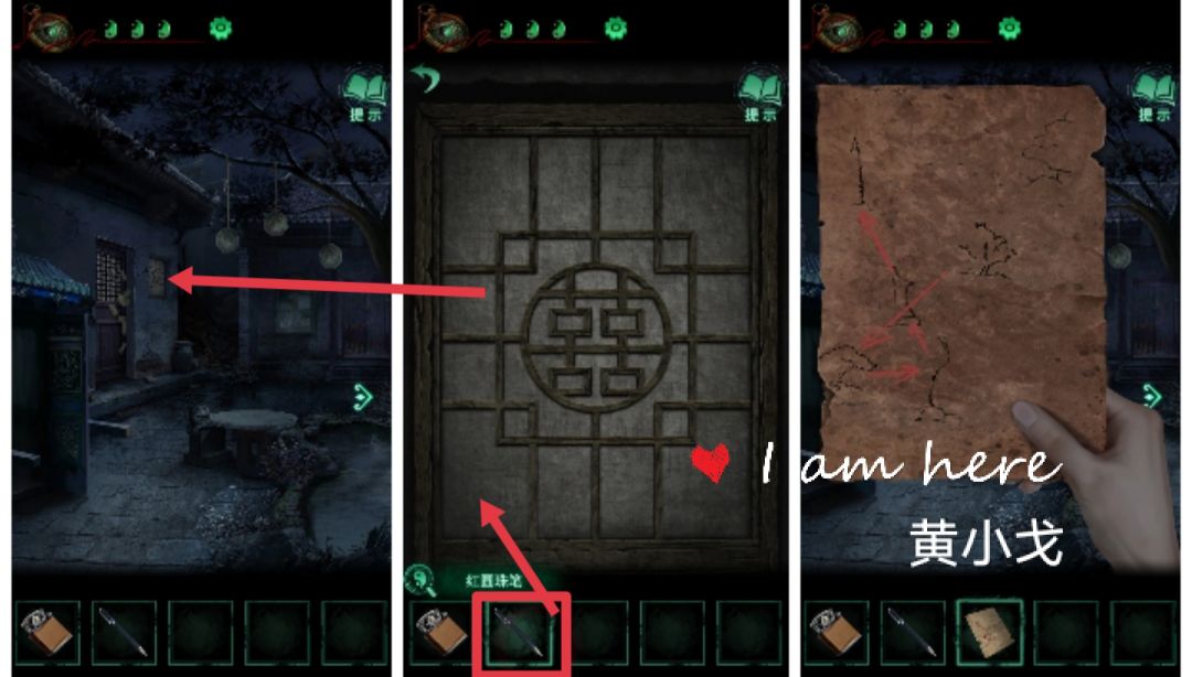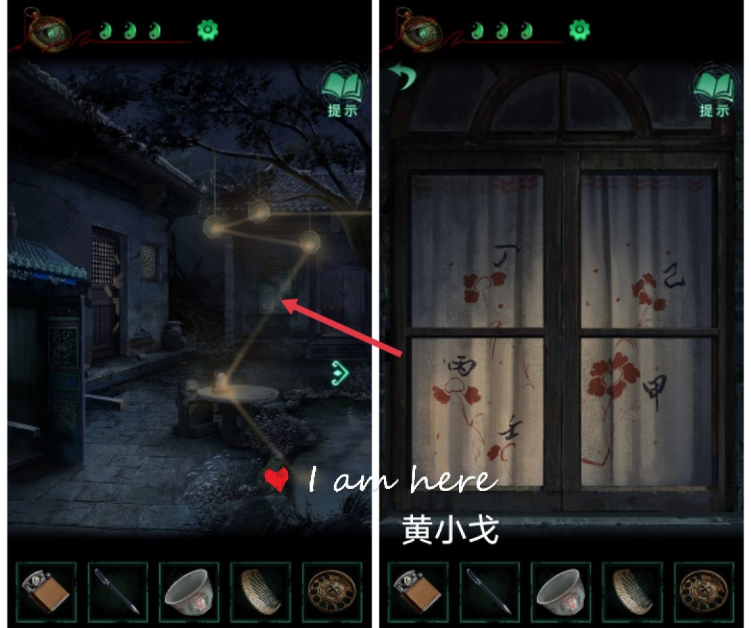 6.向左进入(侧院),触发剧情,用【红圆珠笔】捅破小窗户,触发剧情,获得纸张线索