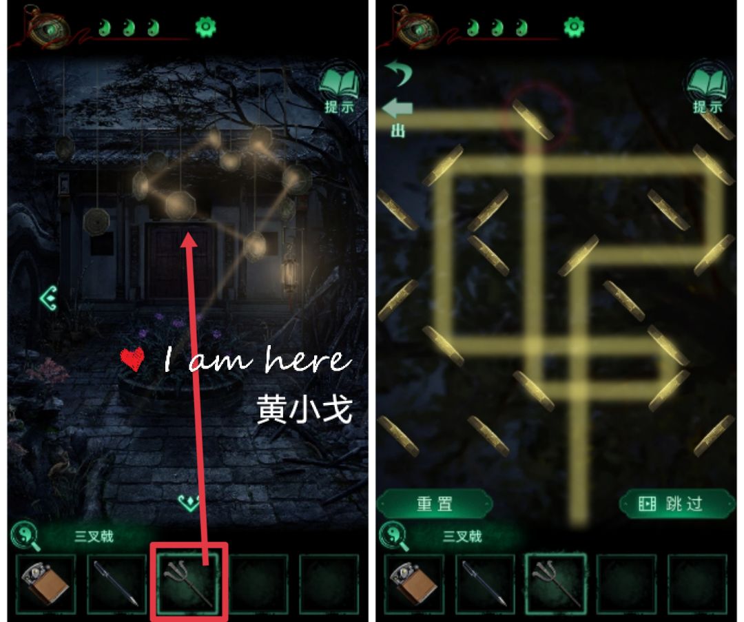 8.用【三叉戟】点击挂着的铜镜,完成镜子小游戏,触发机关