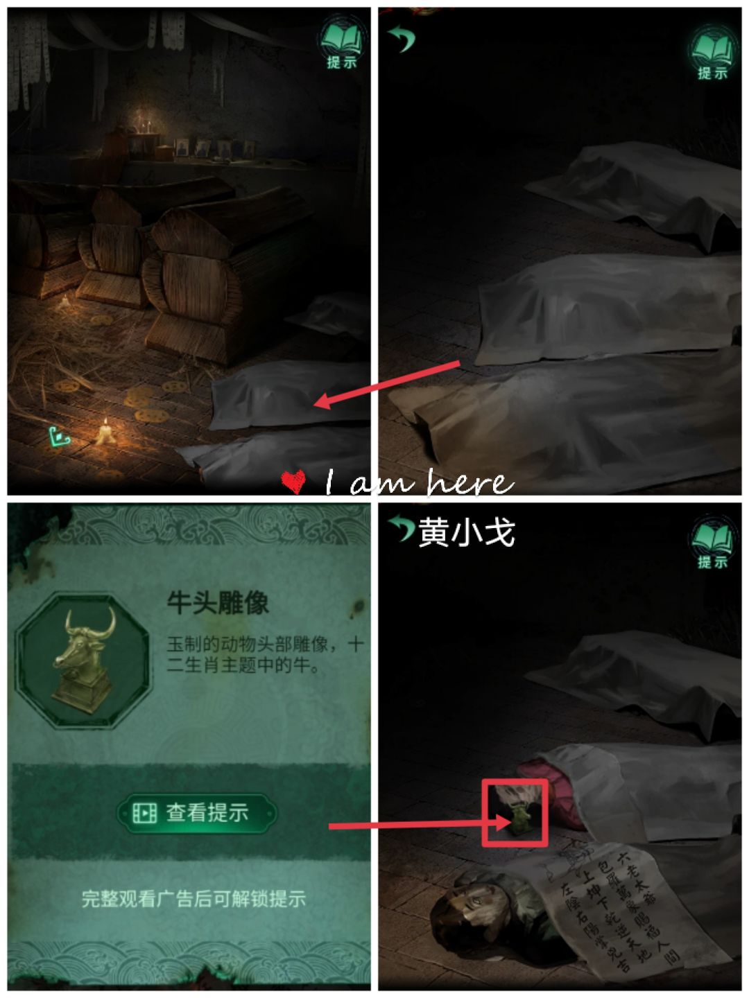 16.掀开地上的白布,在第二个纸人旁边获得【牛头雕像】
