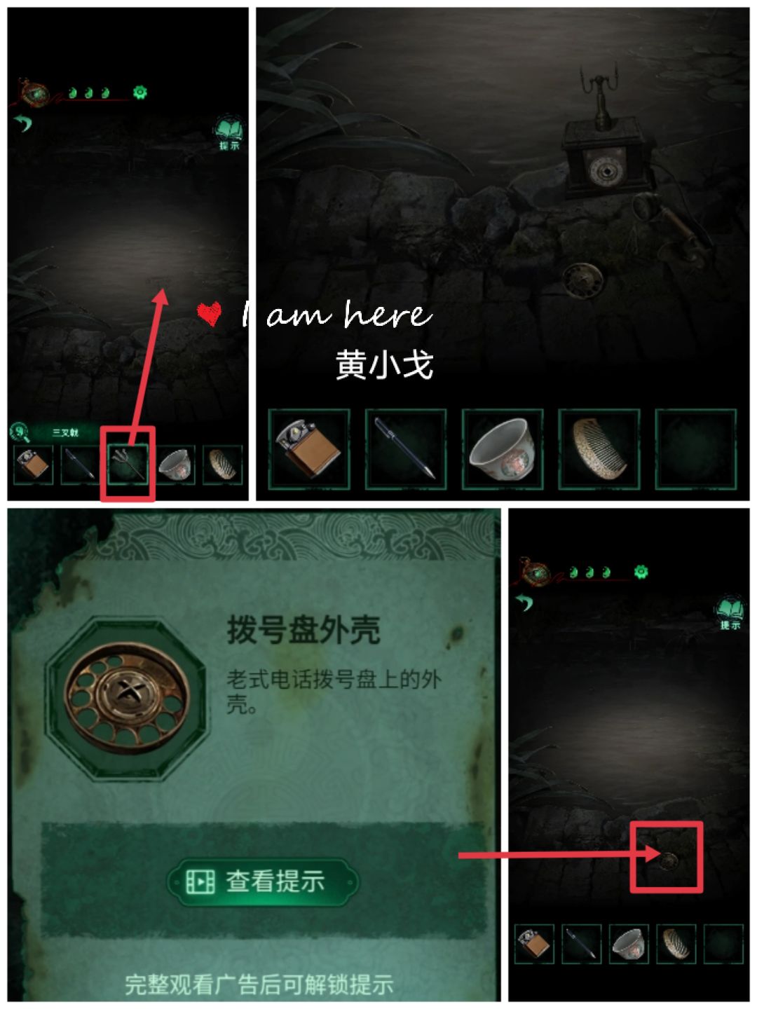 12.点击水池,用【三叉戟】捞出水中的电话,触发剧情,获得【拨号盘外壳】