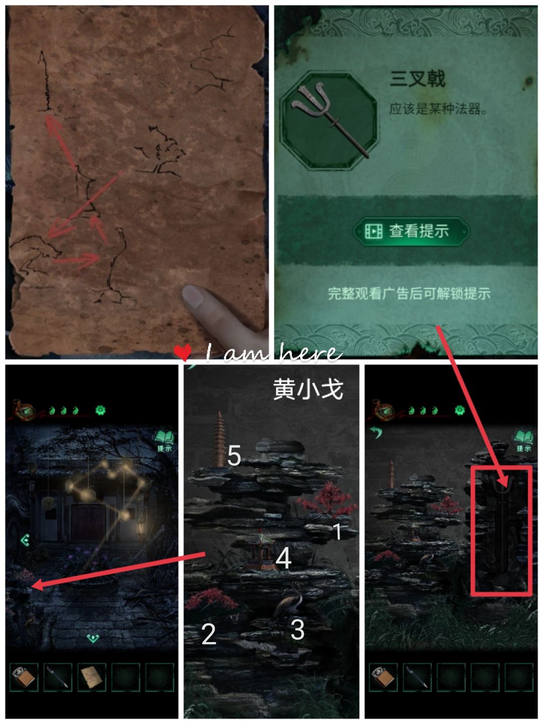 7.(主院)根据线索依次点击左下角的假山上的物品,触发机关,获得【三叉戟】