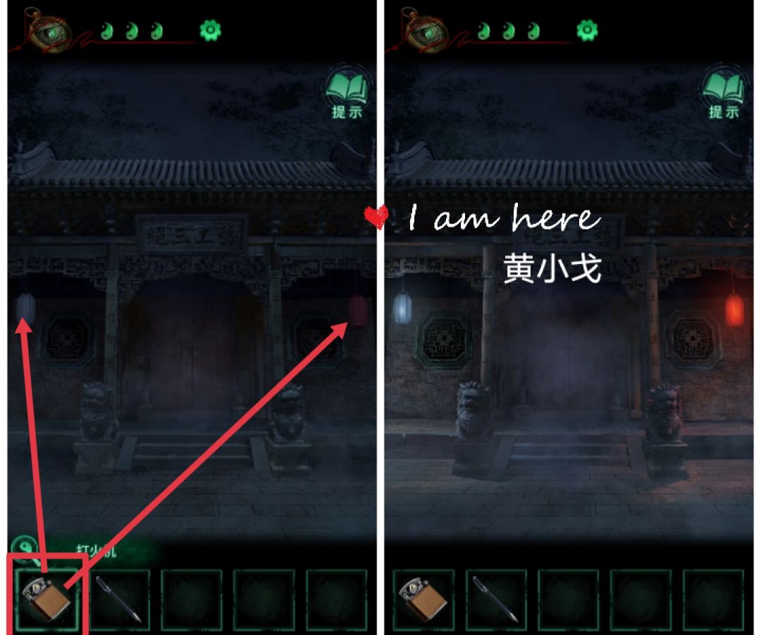 1.(张辰瑞视角)(大门外)用【打火机】点亮左右两边的灯笼