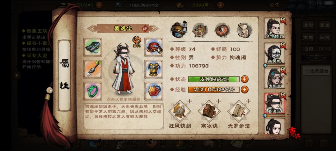 姜,马上幻影,2月西子,内功玄冥,轻功不知道(给给建议吧)
