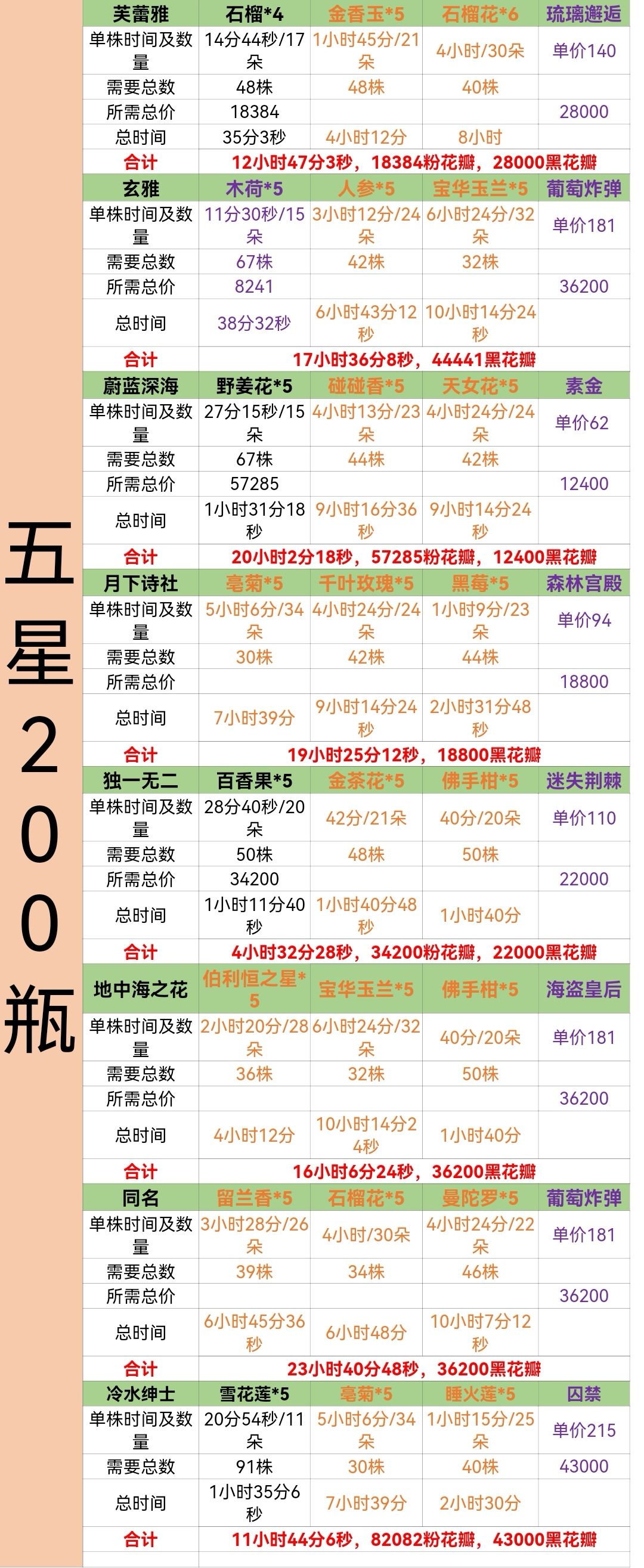 第二,每天做订单攒黑花瓣,差不多周五大量做香水,周六上架双倍爆刷粉花瓣,周日旅行日刷需要的极品种子