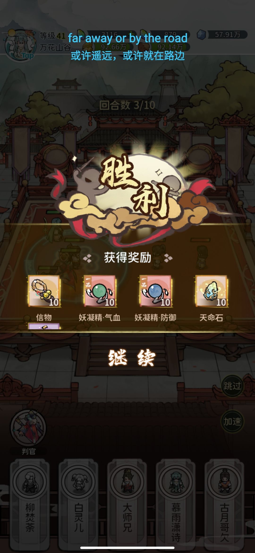 关卡里只有三回合的酒剑仙有奶或者四回合奶,所以在第三回合就需要解决他,不然回血太恐怖,你的阵容估计也没剩多少血了。