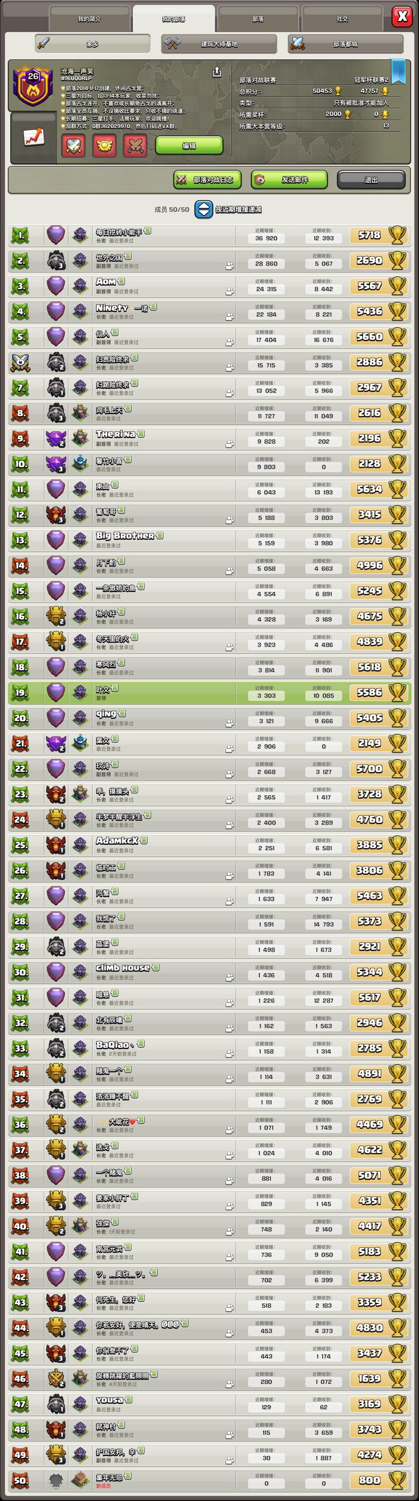 部落最高时冲到了国榜189,后来走了一个人,赛季结算274。