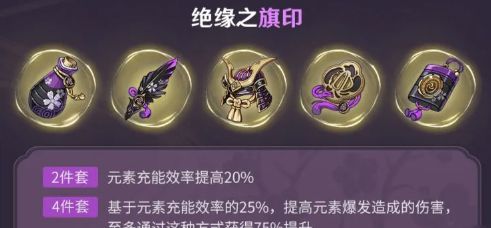 毕业套装筱筱依旧推荐的还是绝缘套哈,目前来看的话4绝缘依旧是雷神常规玩法的最优选择,前期也可以选择主流的二宗室+二攻击作为过度圣遗物。绝缘套2件套时:提升元素充能效率20%。绝缘套4件套时:基于元素充能效率的25%,提高元素爆发造成的伤害,最多获得75%的提升。充能效率能够减短元素爆发的CD。
