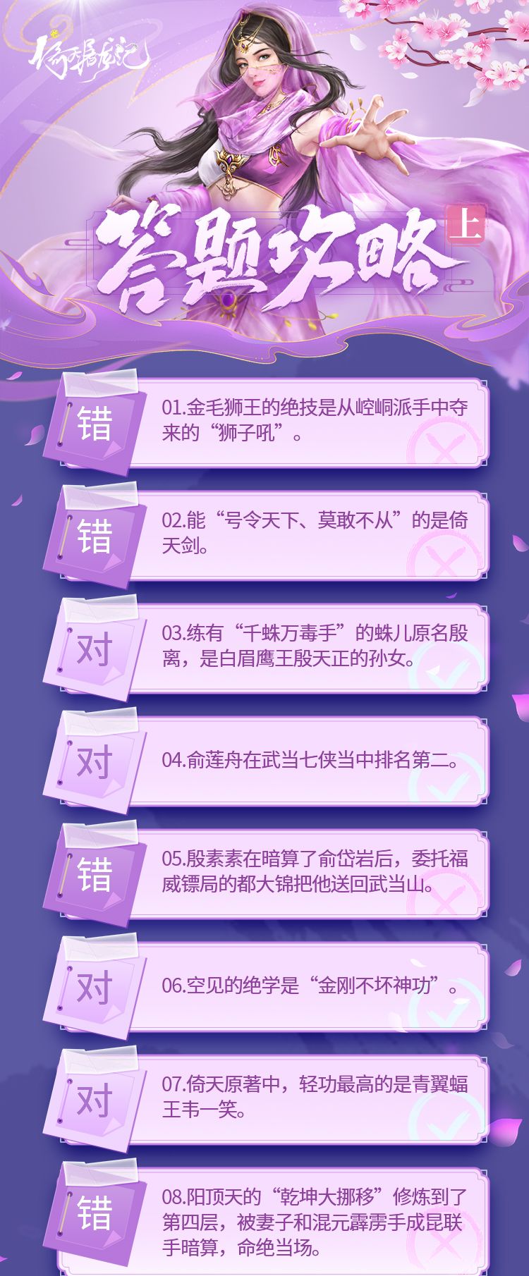 新倚天屠龙记攻略 【攻略】江湖问答解题秘笈(下)