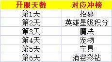 2.【开服竞赛】:每天对应是有一个冲榜排行榜榜单【开服竞赛】,有很高额的奖励的,注意看上榜要求哦,每个对应排名都有一些基本要求的,榜单顺序如下