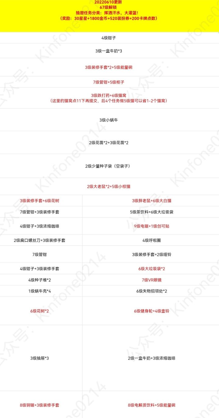 解锁要求:健身房等级达到67级
