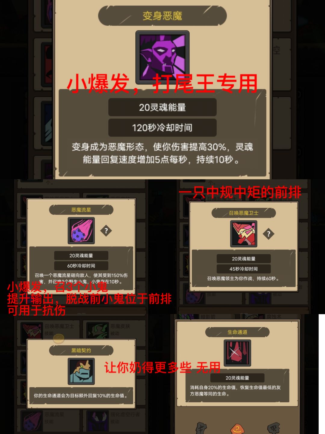 优点:两只前排恶魔+地狱火+流星小鬼,充足的前排能够为自身提供相对较为安全的输出环境。