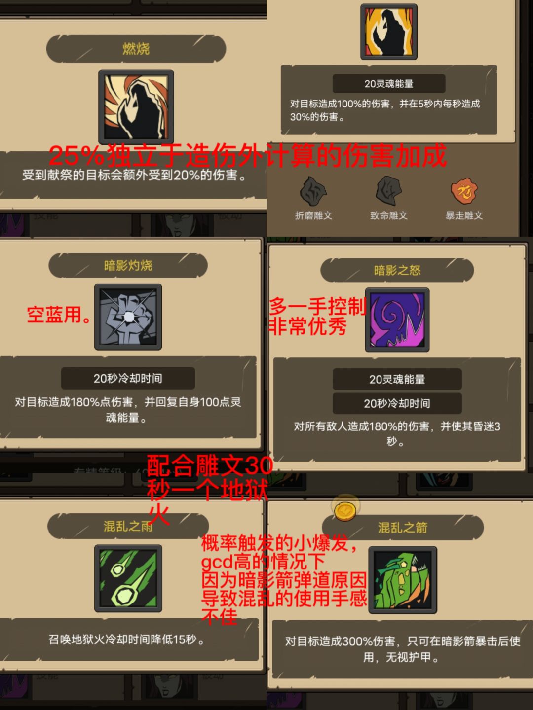 输出手段,献祭+暗影箭+混乱箭,不需要上其他花里胡哨的dot,暴力速杀就完事了。