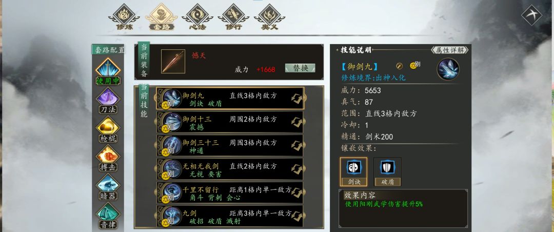 DLC当中的刚剑流派是一个极其强大的流派。无论是九剑的单体输出还是御剑三十三的超大范围高伤害AOE都是无比强大的存在。我们如何在常规剧情中玩到这个流派呢?