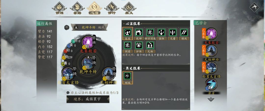 至此,可以直接获取的心法武学就已经搞定了。还剩下两个稍微麻烦一些的,乾坤斗转和白首太玄经。