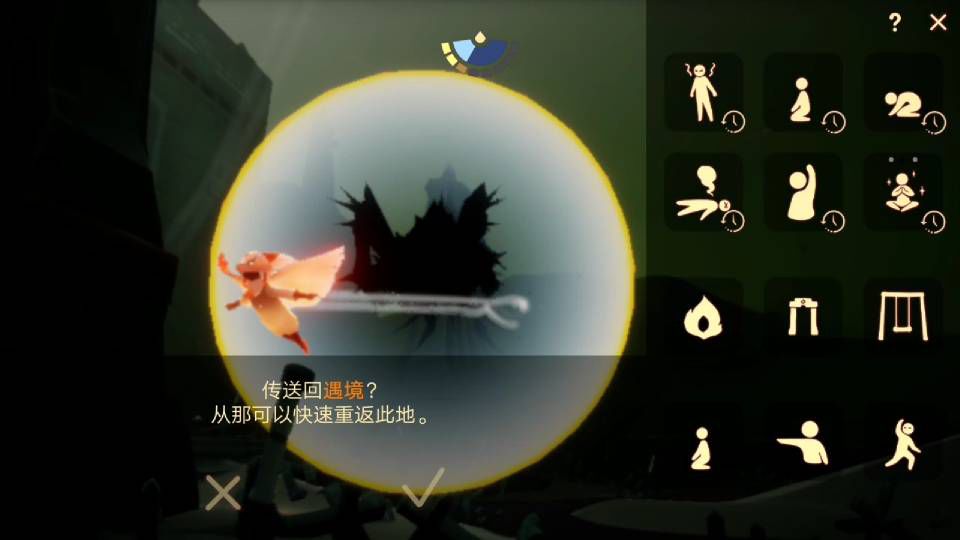 点开 设置中的返回遇境,或者动作中的返回遇境