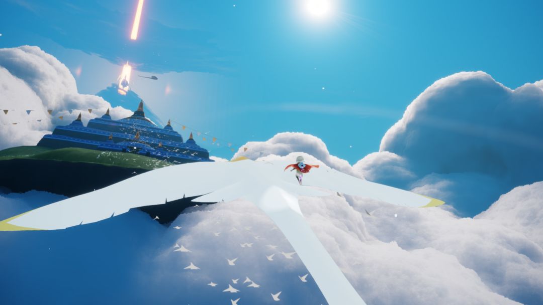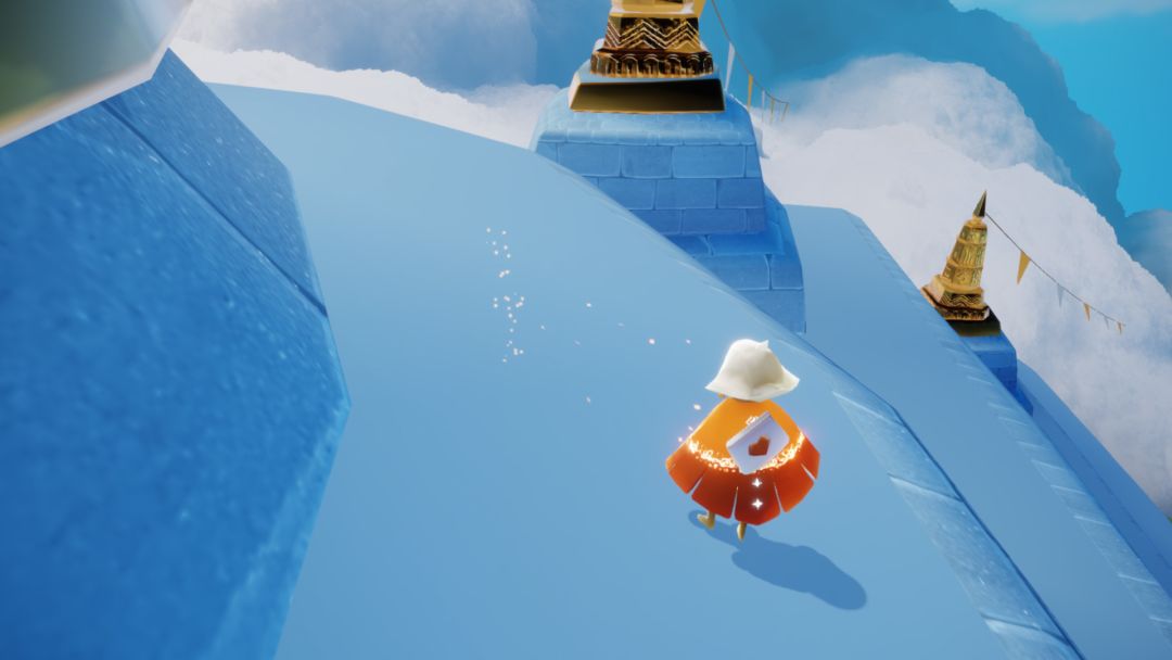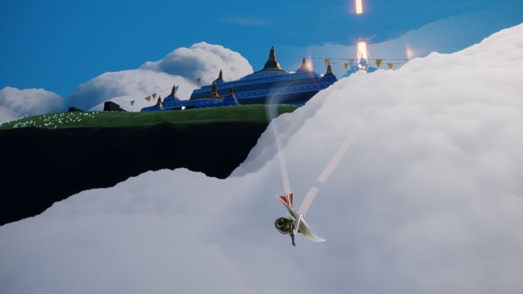 (熟练后,可三翼直接蹭着右边的云飞上来,然后继续蹭云,极限两翼状况下可以直接飞到神庙顶端小金人那里)