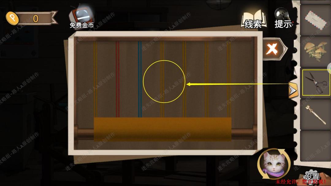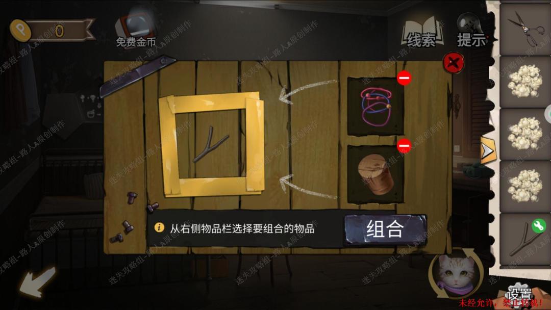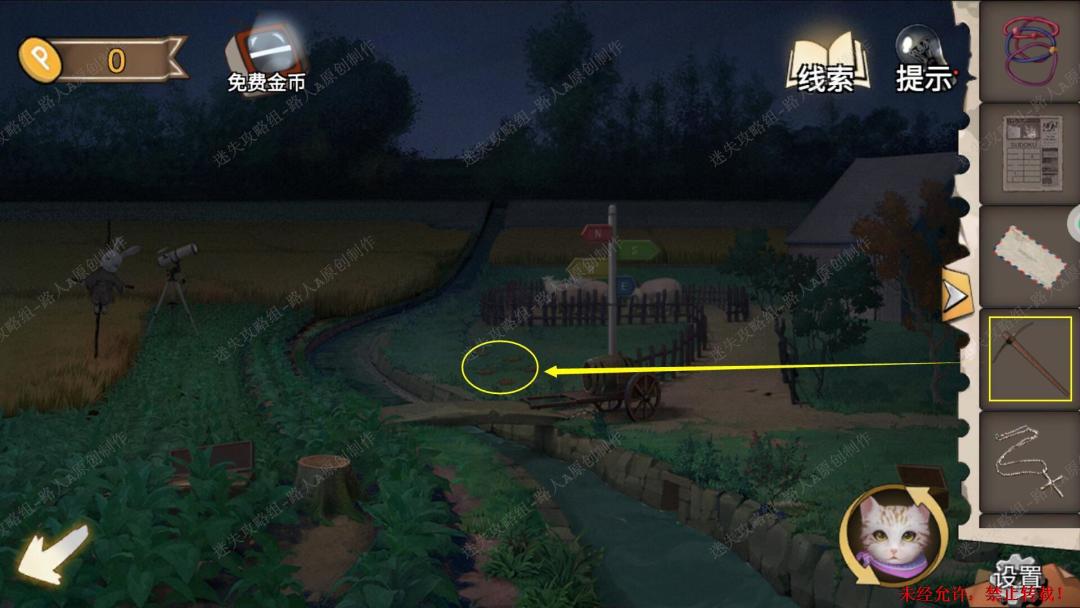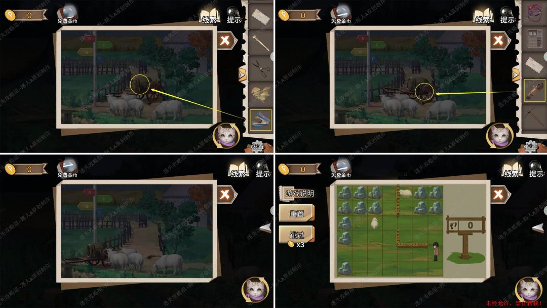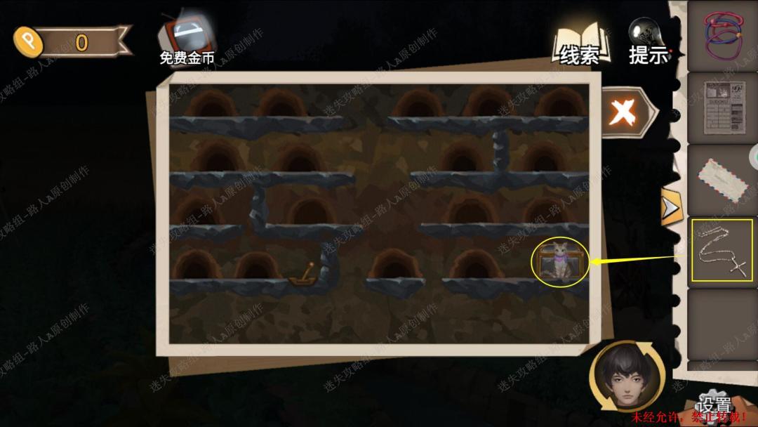 93.用【十字镐】凿开泥土,切换猫视角进入洞穴,完成小游戏,最后用【十字架】打开箱子,得到【金属轮轴】。93.1、93.2