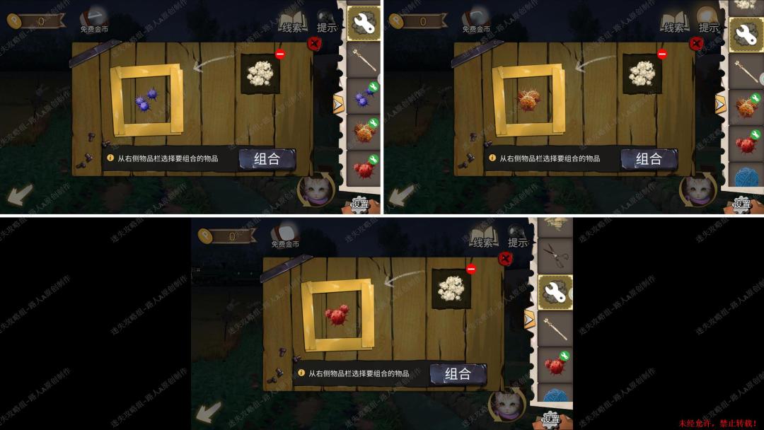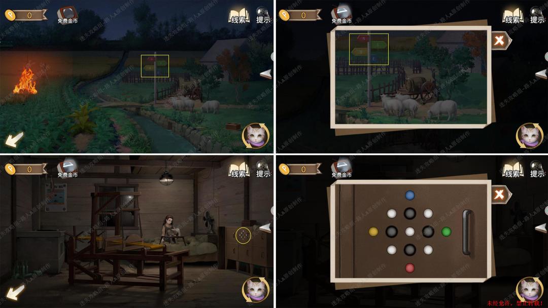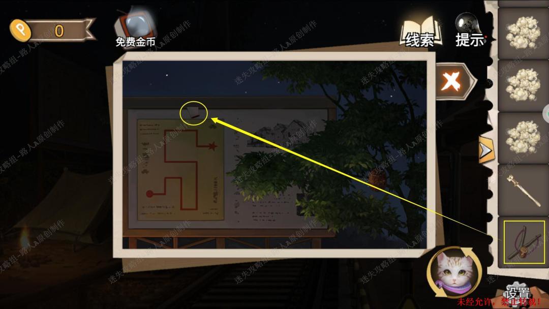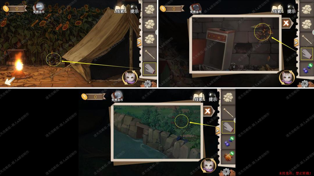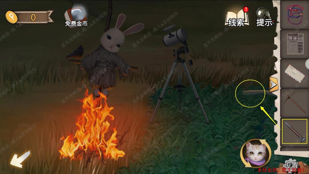 93.用【十字镐】凿开泥土,切换猫视角进入洞穴,完成小游戏,最后用【十字架】打开箱子,得到【金属轮轴】。93.1、93.2