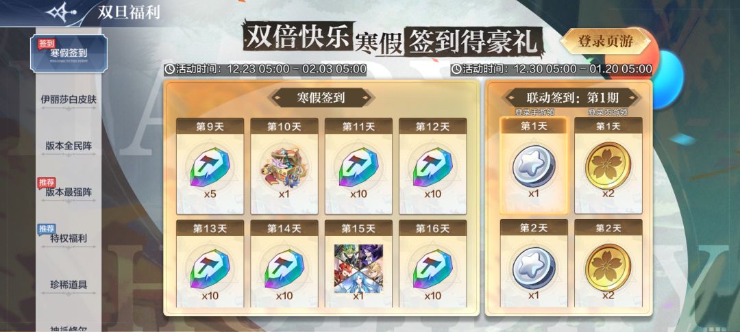 【12月30日更新公告】手游&页游联动签到开启!更多跨年福利来袭!