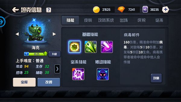 海克是一辆偏重干扰,擅长消耗战的坦克,战斗的时间越长,海克发挥出的威力就愈发明显,当全场都跳动着海克病毒的数字,那么胜利就近在眼前了!