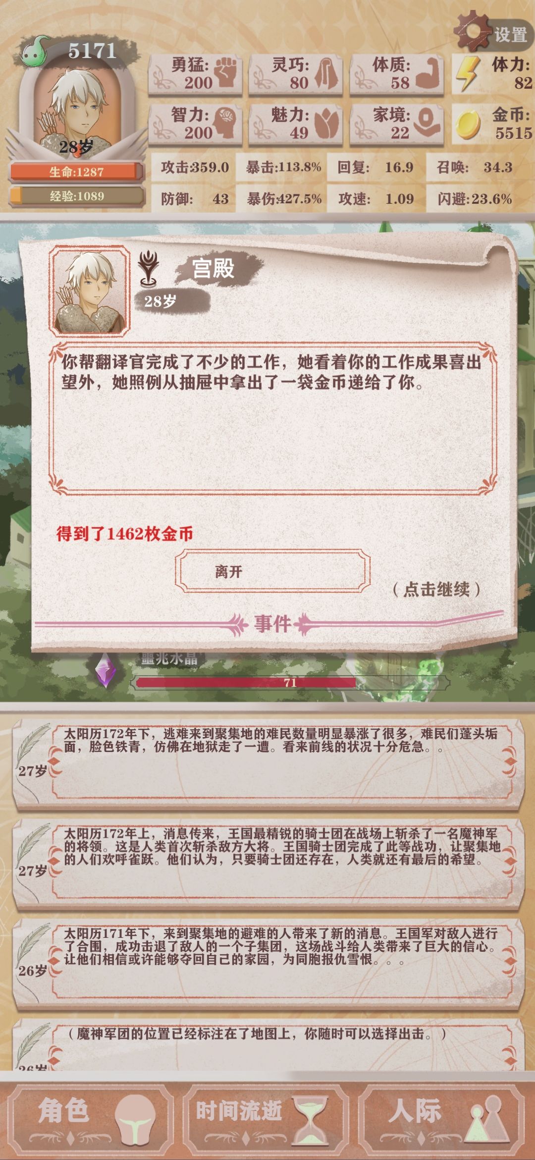 至于堆智力,11岁前15体力+1,帮父亲+1,25体力一定次数后边+2,帮树人+3,帮精灵偶尔+1,去精灵图书馆读书+2,蜘蛛女郎事件选择进入后离开+1,卖假药选择不信+1。