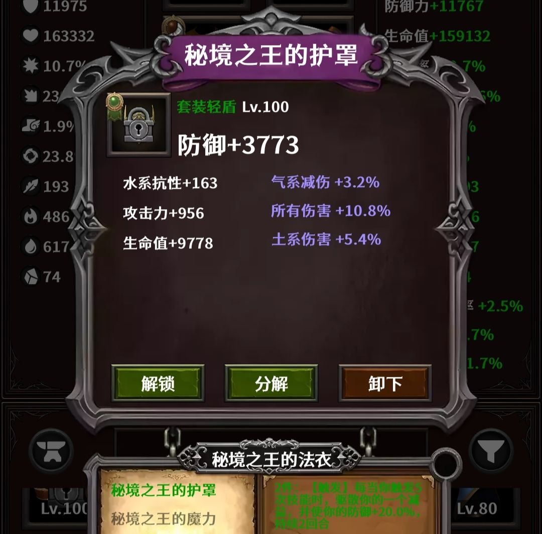 副手:秘境之王的护罩,收集换。属性找攻击力、所有伤害。每回合洗debuff。
