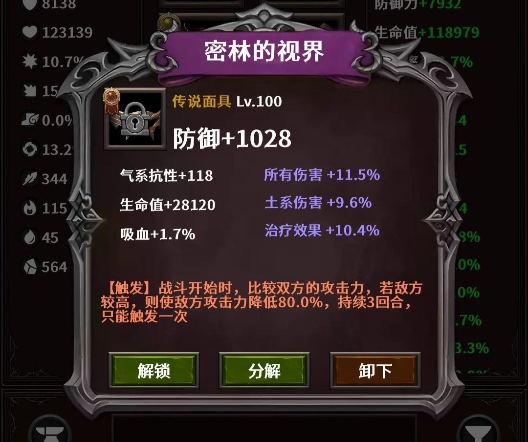 头盔:密林的视界,收集换。属性找生命值、所有伤害。