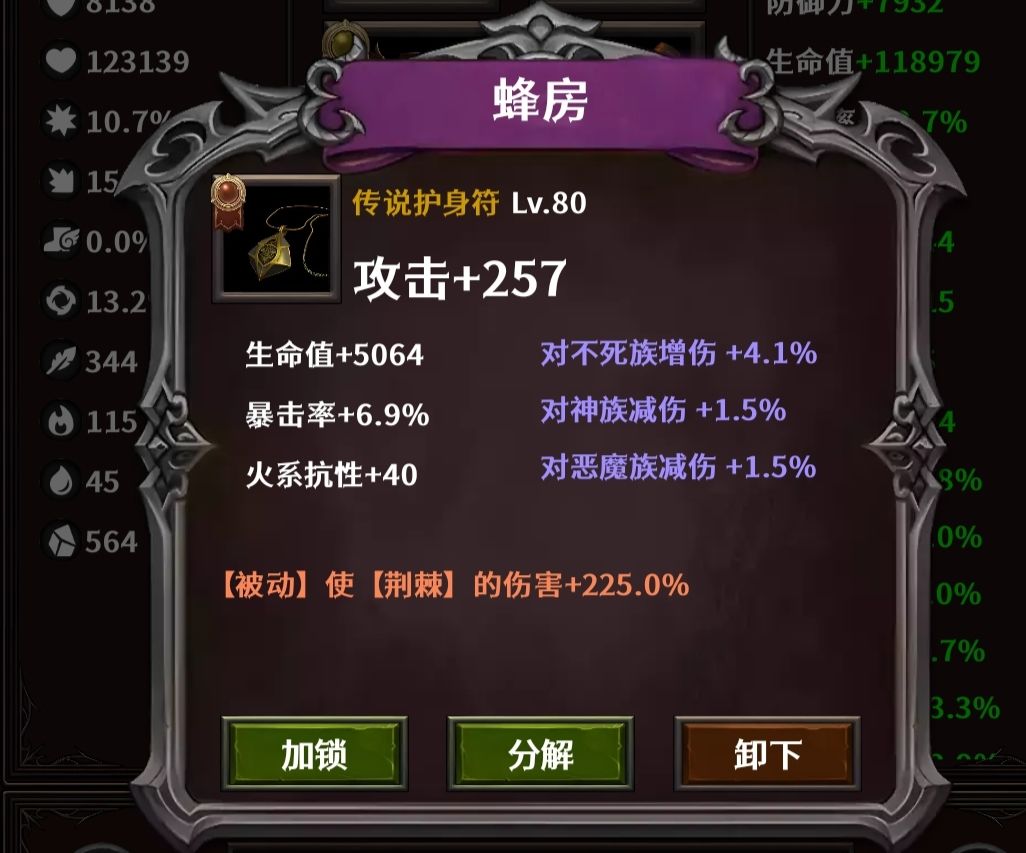 项链:蜂房。属性找生命值。