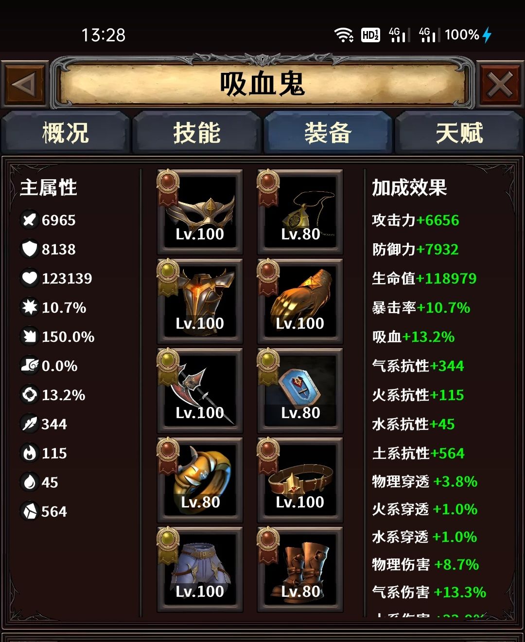主手、衣服、裤子、戒指根据自己有的配。武器找高攻击和吸血。
