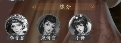 李香君的缘分有三个,这些挚友都会提升李香君的赚速属性。第一个李香君通过秦淮五艳兑换的,第二个采诗官是通过采风寻诗活动获得的,第三个小舞通过小舞回忆活动获得的。