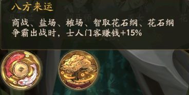 门客的副业基本上都是一样的,除了最后一个不一样之外。第一个技能财源广进是可以提升门客所委任的商铺赚速增加百分比赚速。