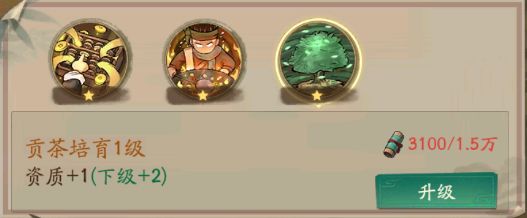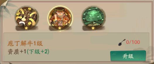 天赋技能,有两个,八方来运,招财·农道,都有详细解释,大家可以看看。升级的方式就需要精进到1星才可以升级,这里面天赋升星差不多都是用门客帖来升星的要消耗3张。