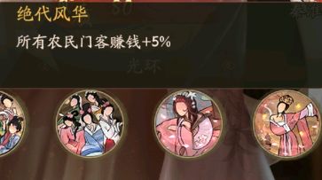 绝代风华,会给所有的农民门客增加百分之5的赚钱,你的士人门客越多增加得就越多。