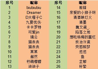 以下是提供了昵称的玩家。