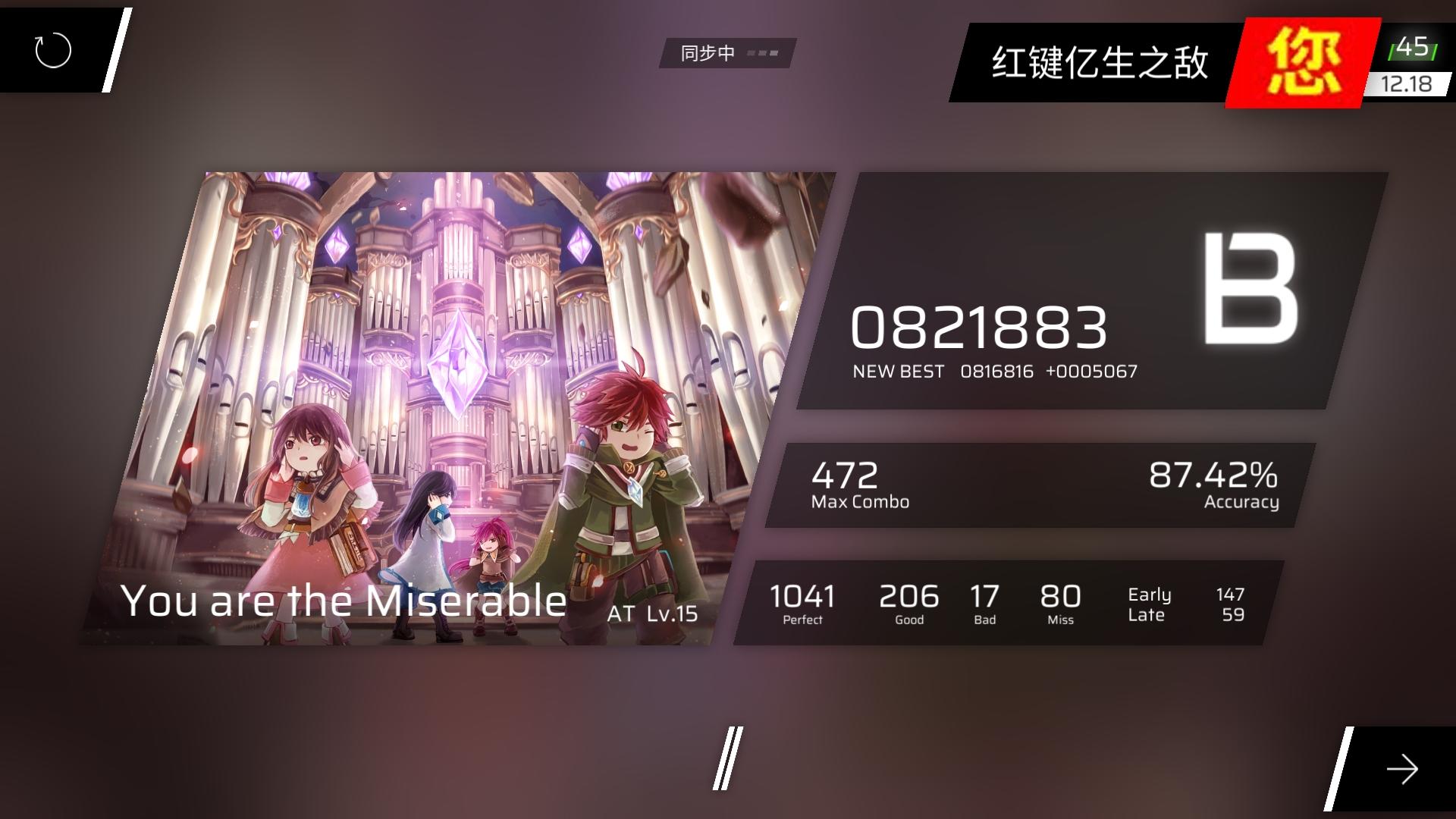 今天本想逝逝炸船,没想到S了,干脆逝逝能不能解at,又没想到原本次次打B的Protoflicker居然上A,接着全连了遍非常简单的Horizon Blue的EZ难度,解了You are the Miserable的at,逝了几遍用二指打上B,终于是解了炸船的at(ಡωಡ)hiahiahia ),但是太下饭了,解了也不会打