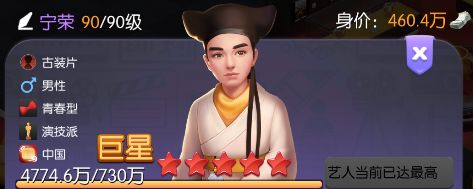 技能特性:参与拍摄古装片时,9档电影额外提升票房约12.5万