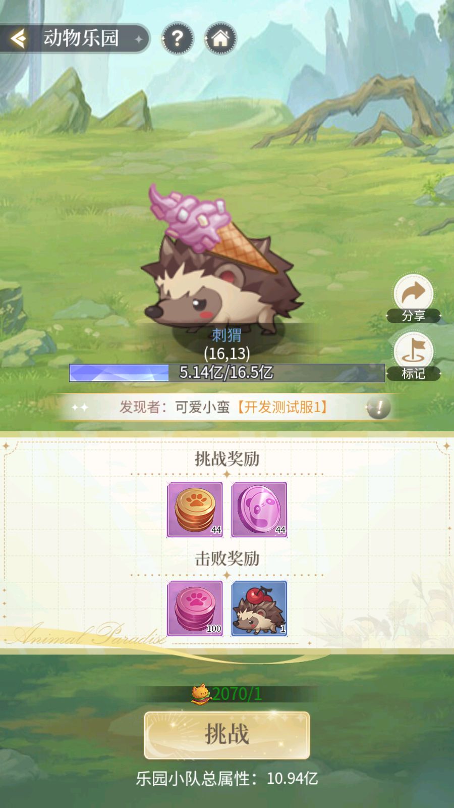 神兽挑战:单次挑战造成的伤害值为当前乐园小队出战的6名伙伴的总属性之和(乐园宝物属性加成生效),并可获得积分和乐园币奖励。对神兽发起最后一击的千金将额外获得大量积分和乐园币奖励。