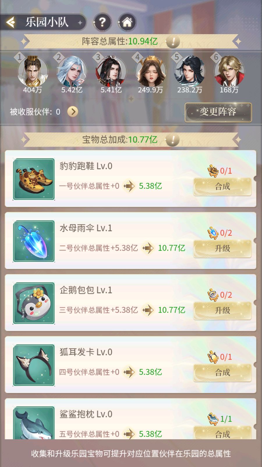 可通过乐园探险获取的宝物碎片,合成宝物或升级宝物等级。宝物将高额增幅对应出战位置的伙伴总属性,并在活动中任意战斗玩法中生效。