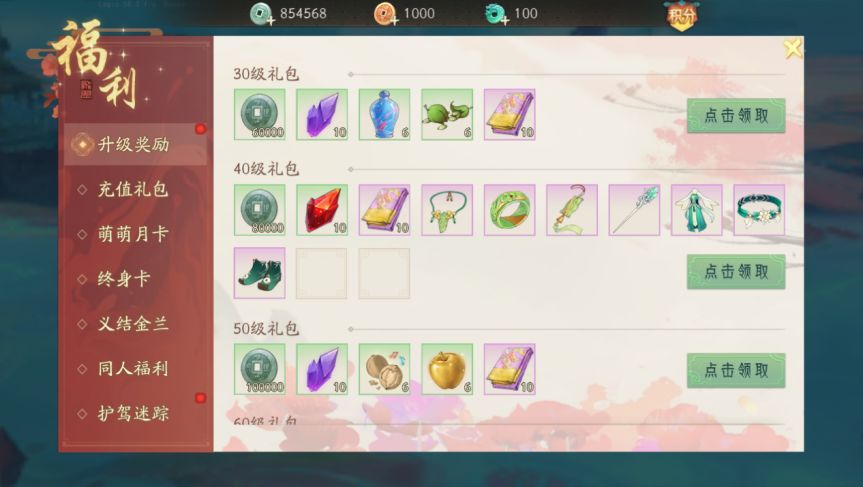 新服开启后,创建角色前30天,每日登录都可领取限量好礼,助力少侠江湖路!