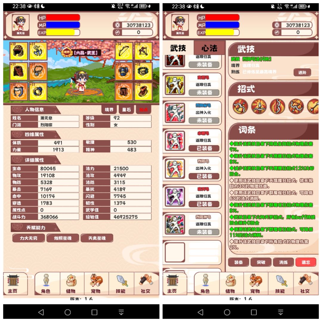 技能换成法术的烈阳弓开盾减伤回蓝,5技能回蓝回血(赤血也可以)加上物理赤瞳的回血抗住。(刷不到金技能,很痛苦)寂灭还是物弓的主要输出,也有技能是90%受伤加成(修了就寄,高级怪也很难中buff)