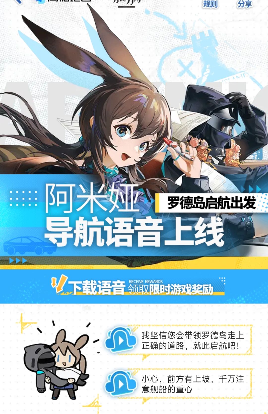 联名导航语音上线,阿米娅皮肤和导航语音上线。
