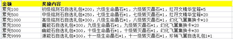 【活动规则】:活动期间,充值达到要求即可领取对应奖励(达到高档位叠加低档位)