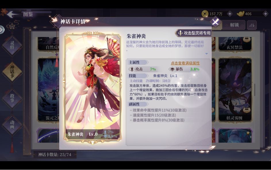 在神将搭配上,朱雀较为百搭并没有固定阵容,比较契合的神卡是哪吒,且哪吒需要速度低于朱雀,朱雀大招附加灼烧效果后,哪吒的大招将在原有基础上打出额外20%伤害,搭配清场效果奇佳,适合前中期快速刷本。