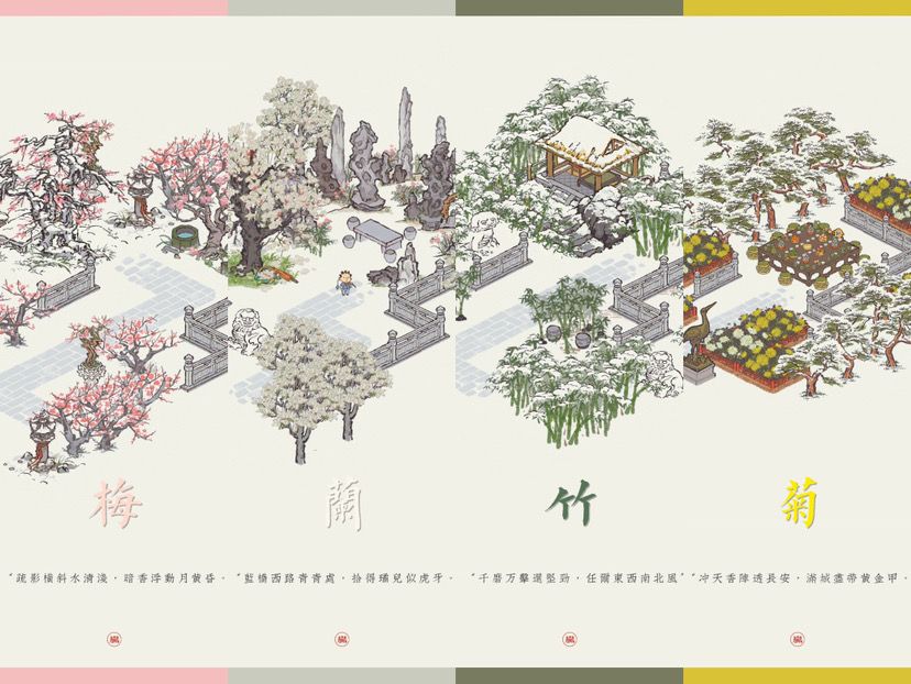 🍃江南百景图布局|梅兰竹菊🌼 没有兰花就用玉兰平替了,有“兰”就是“兰”啦。